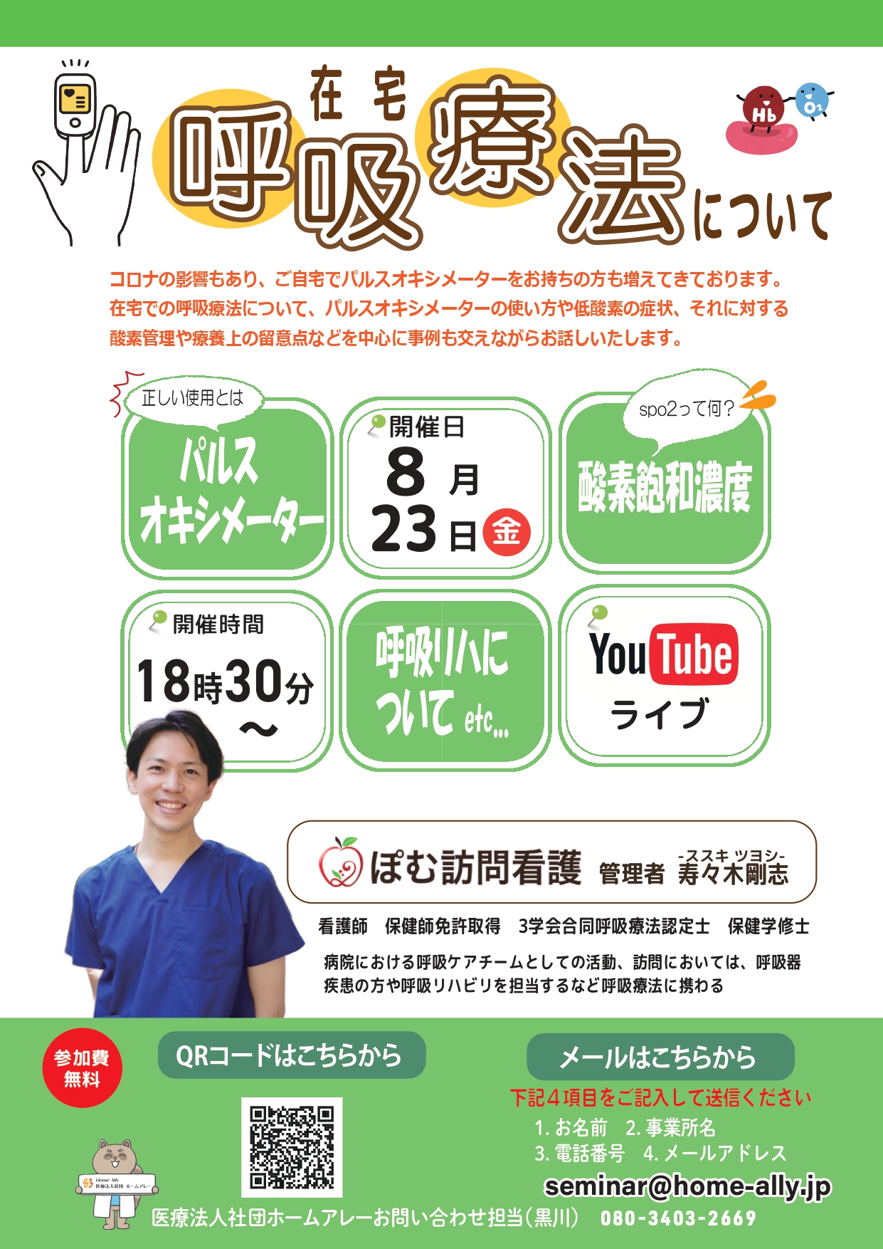 【終了】8月20日 8:30~無料セミナー /在宅での呼吸療法について